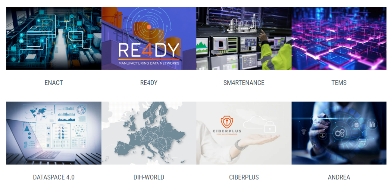 Figure 2. A sample of R&D projects where Innovalia participated, having coordinated RE4DY, DATASPACE4.0, SM4RTENANCE and TEMS.